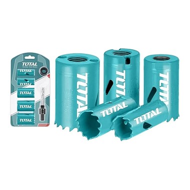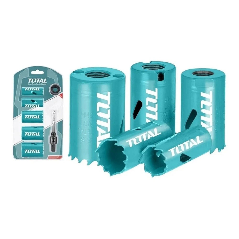 5 Copas sierra medidas: 3/4" (19 mm), 7/8" (22 mm), 1-1/8" (29 mm), 1-1/4" (32 mm) y 1-3/8" (35 mm)