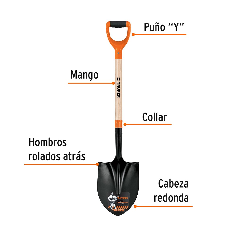 PALA TRUPER P/HUEVO M/CORTO PRY-P (17160). Es una herramienta versátil ideal para excavar, mover tierra y mezclar materiales en tareas de jardinería, agricultura y construcción ligera.