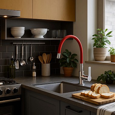 Monomando Lavaplatos Cuello Flexible Rojo Taumm
