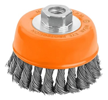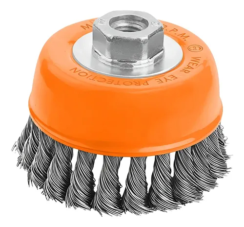 Grata Copa de Alambre Acero Ondulado con núcleo de acople para remover el óxido y la pintura en superficies de metal.