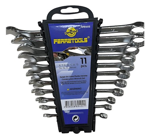 Juego Llave Punta Corona 11 Piezas 6-19 mm Ferretools. Se utiliza principalmente para apretar o aflojar tuercas y pernos con cabeza hexagonal en una variedad de aplicaciones manuales y de mantenimiento general.