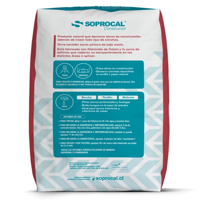 Para Pintar: diluir 1 saco de Pintacal en 35 Lt de agua y mezclar bien.