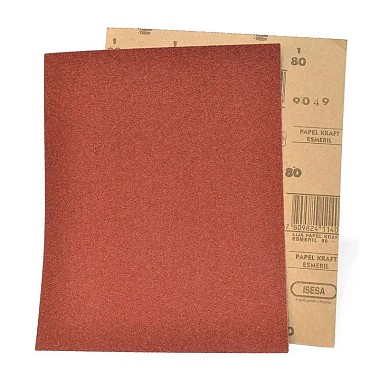 La lija para madera Isesa, comúnmente de papel Kraft con granos de óxido de aluminio, está diseñada para desbaste, lijado y acabado en seco de madera, masillas y pinturas. Ideal para trabajos de carpintería y renovación, se recomienda usarla a mano o con taco, siguiendo la veta.