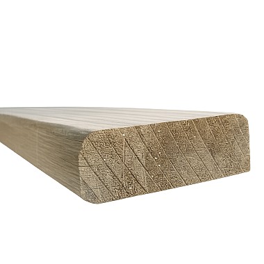 La Tabla Terraza con Botado Cepillada Impregnada de 1 1/2 x 4 pulg. x 3.20 mts. de largo de Maderas Chocalán, diseñada para terrazas y pisos exteriores, esta tabla cuenta con cantos redondeados en ambos lados, lo que garantiza comodidad al caminar y un acabado seguro y estético. Pieza tratada con el proceso de impregnación para mejorar su resistencia a las condiciones ambientales, garantizando una mayor longevidad y un desempeño superior.